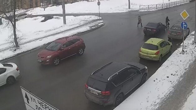 Шаг до трагедии: в Петрозаводске женщина перебежала дорогу в сантиметрах от машины
