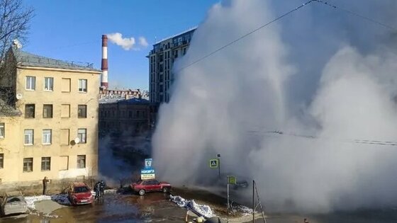 Фонтан в несколько этажей: в центре Петербурга прорвало трубу с кипятком