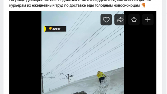 «На улице Декабристов наш подписчик стал очевидцем того, как нелегко даётся курьерам их ежедневный труд по доставке еды голодным новосибирцам», — говорится под видео, размещённым на странице паблика «АСТ-54» в социальной сети «ВКонтакте».