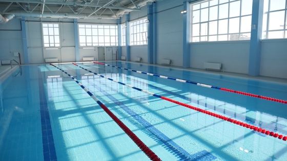 В новом современном спорткомплексе есть классический 25-метровый бассейн с четырьмя дорожками, детский бассейн и тренажерный зал.