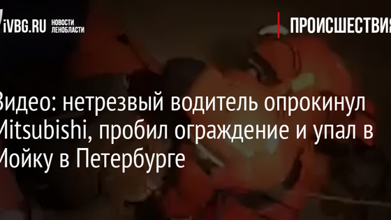 Видео: нетрезвый водитель опрокинул Mitsubishi, пробил ограждение и упал в Мойку в Петербурге