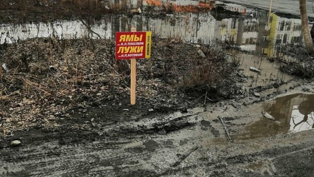 В Челябинске жители нового жилищного комплекса, устав ездить по ямам, колдобинам, а также перепрыгивать через лужи, установили на дороге Агалакова – Прохладная новые таблички. Челябинцы пытаются привлечь внимание властей к проблеме ям и выбоинах на дорогах областного центра всеми способами. На дороге Агалакова – Прохладная они установили своеобразные предупреждающие знаки. Так, с их легкой руки появились таблички «Кочки Орла», «Колдобины Тефтелева», «Ямы Текслера» и «Лужи Котовой». Как сообщил сегодня, 12 апреля, на традиционном аппаратном совещании в администрации Челябинска руководитель аппарата Валерий Смирнов, за неделю поступило почти полторы тысячи жалоб от жителей на ямы и выбоины на дорогах, а также многочисленные подтопления проезжих частей. Ямочный ремонт в Челябинске уже начался. «В работу запущено четыре асфальтобетонных заводов. Также началась массовая помывка технических средств организации дорожного движения: знаков, светофоров, ограждений», - сказал заместитель главы города по дорожному хозяйству Максим Куляшов. Также в Челябинске продолжается диагностика автодорог и определяются участки, на которых в первую очередь будет произведен ремонт.