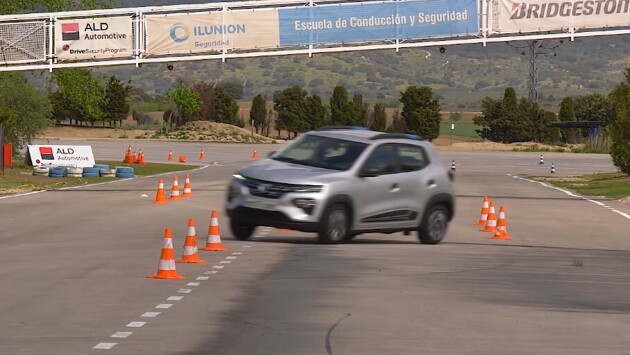 В ходе первой попытки водитель, пока не знакомый с повадками Dacia Spring, не смог выровнять его на скорости 74 километра в час. В результате компакт-кросс сбил два конуса. Лучшей попыткой стал заезд на скорости 77 километров в час: водителю пришлось постараться, но он все же смог выровнять автомобиль после резкого перестроения и не задеть ни одного препятствия.