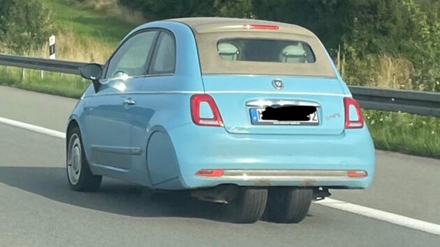 В Сети появились снимки необычного «трёхколёсного» Fiat 500. Транспортное средство сфотографировали на немецком автобане.
