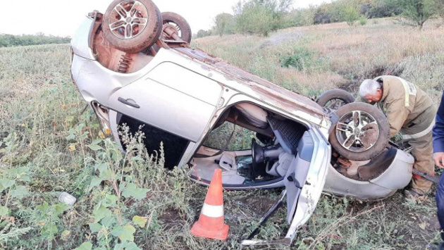 В Самарской области "Калина" вылетела с дороги и перевернулась