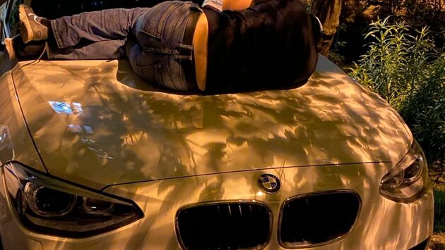 На улице Генерала Глаголева прохожий «прилёг отдохнуть» на капот БМВ