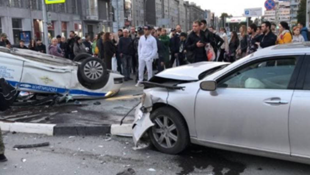 В ГУ МВД РФ по НСО сообщили, что пострадала только машина. Также известно, что сотрудники ДПС ехали на вызов об угоне.