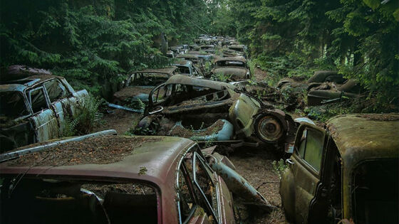 30-летний госслужащий из Германии Роберт Кахл просто одержим автомобилями: он более десяти лет посвятил поиску машин, оставленных ржаветь в лесах и полях Европы. Эти снимки сделаны в Германии, Швеции и Бельгии, и сам Кахл говорит, что они изображают «красоту скоротечности и обаяние упадка».
