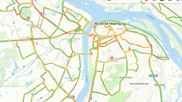 На проспекте Гагарина пробки образовались в районе Мызы и ННГУ имени Лобаческого. Также серьезные заторы наблюдаются на прилегающих улицах Горной, Ларина и 40 лет Октября.