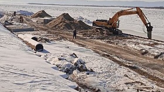 Строительство защитной дамбы возле яхт-клуба в Хабаровске завершено более чем на 70%