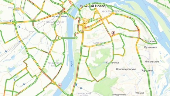 Большие пробки наблюдаются на улицах Акмолинской, Коминтерна, Культуры, Баумана, Краснодонцев, Новикова-Прибоя, Родионова, Ванеева, Надежды Сусловой, Сормовском шоссе, проспекте Ленина.