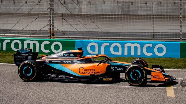 О техническом обновлении машины MCL36, конечно, судить по одному изображению невозможно. Но на опубликованном фото с заезда в Сахире можно заметить, что команда внесла изменения в раскраску. Кожух двигателя теперь выкрашен в черный цвет и там появился логотип с название гибридного суперкара McLaren Artura. Также в черный цвет окрашены стойки заднего антикрыла.