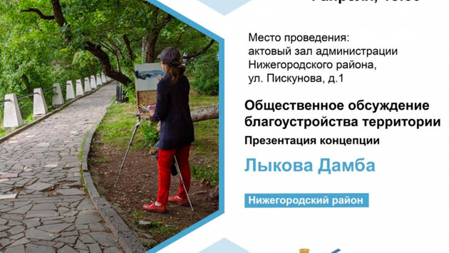 Обсуждение проектов благоустройства пройдет на этой неделе в актовом зале администрации Нижегородского района, расположенном по адресу ул. Пискунова, 1, 3 этаж.