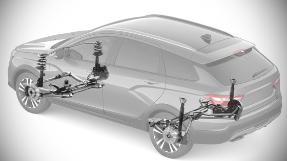 Архитектура новой задней подвески Lada Vesta проста — схема с парой диагональных и одним продольным рычагом позволяет внести изменения в конструкцию малой кровью. Комплект состоит из поперечной балки, кронштейнов креплений и, собственно, рычагов. Есть в планах «Автопродукта» и модернизация передней подвески — покупателям хотят предложить заменить нижние рычаги и добавить поперечину к переднему подрамнику.