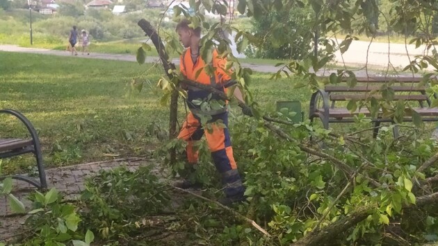 Из-за сильного ветра на ул. Октябрьской, 66а, на провода, ведущие к торговому павильону, упало дерево. Привести территорию в порядок должен будет сам собственник. Было зафиксировано два случая, когда ветки падали на тротуары. Это случилось рядом с ТЮЗом и на ул. Новгородской, 13. Специалисты Центра гражданской защиты распилили деревья для удобной транспортировки коммунальщиками.