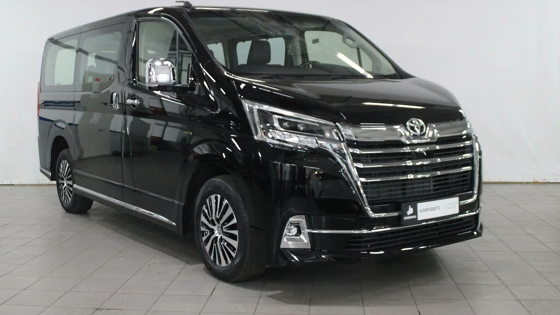 5,3-метровая Toyota Granvia оборудована тремя рядами сидений, при этом сзади они имеют подставки для ног и собственные регулировки. В оснащение автомобиля входит адаптивная передняя оптика, электроприводы задней и боковых дверей, камеры кругового обзора, а также продвинутая мультимедийная система, отделка салона кожей и подогрев всех кресел.
