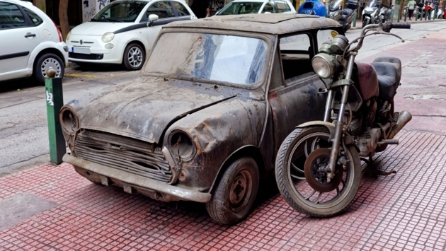 Сарайные находки обычно происходят в отдаленных местах, но иногда классические автомобили могут быть брошены в центре города. Это то, что произошло в Афинах, Греция, когда классический Mini Cooper и мотоцикл Yamaha были найдены на парковке отеля более чем через три десятилетия после того, как владелец оставил их там.