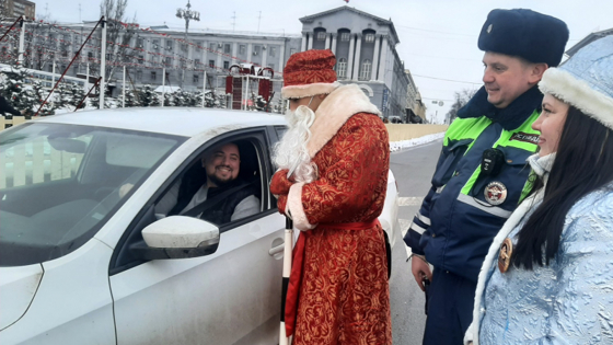 ГИБДД вместе с Дедом Морозом патрулируют дороги в Нижнем Новгороде