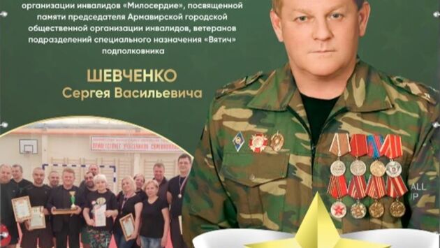 В Армавире 18 февраля состоится Спартакиада Армавирской городской общественной организации инвалидов «Милосердие», посвященная памяти председателя Армавирской городской общественной организации инвалидов, ветеранов подразделений специального назначения «Вятич» подполковника Сергея Васильевича Шевченко.