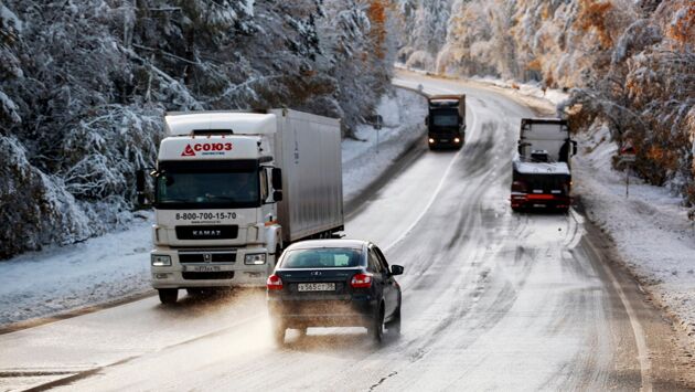 Ограничение на движение большегрузов и автобусов введено на участке федеральной трассы Р-258 "Байкал" в Иркутской области из-за снегопада. Об этом в понедельник сообщила пресс-служба Упрдор "Прибайкалье".