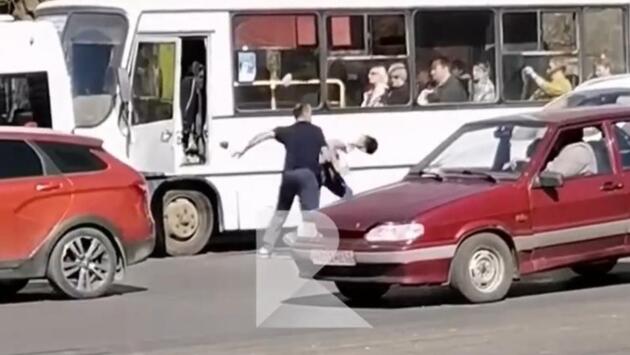 «Два водителя маршрутки что-то не поделили, водитель маленькой маршрутки преградил дорогу и начал ругаться на второго водителя. В итоге — драка», — говорится в сообщении.