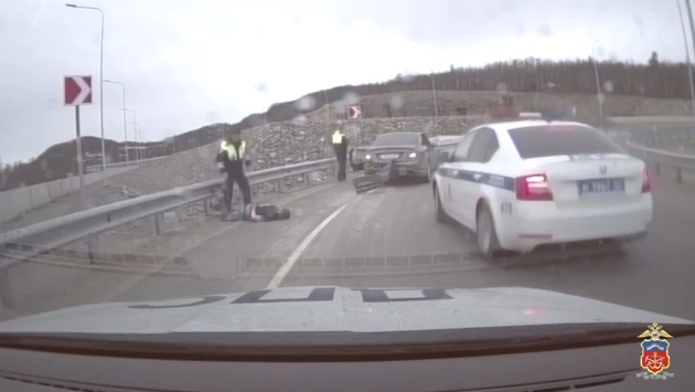 Ранним утром во время патрулирования одной из центральных улиц областного центра внимание сотрудников дорожно-патрульной службы привлек автомобиль марки «Мерседес», который на большой скорости проехал регулируемый перекресток на запрещающий сигнал светофора. Сотрудники полиции при помощи системы громкой связи потребовали водителя остановиться, однако, водитель указанного транспортного средства, проигнорировав требования сотрудников полиции об остановке, увеличил скорость движения и попытался скрыться от стражей порядка. Двигаясь на большой скорости по центральным автомобильным артериям города, водитель автомобиля «Мерседес» грубо нарушал Правила дорожного движения, выполнял опасные маневры, создавая реальную угрозу жизни другим участникам движения, в связи с чем для остановки транспортного средства сотрудниками полиции было принято решение о применении табельного огнестрельного оружия. Предупредив водителя, дорожные полицейские произвели выстрел по колесам движущегося автомобиля, однако нарушитель продолжил движение. Вскоре, не справившись с управлением транспортного средства, «лихач» допустил наезд на препятствие в виде дорожного ограждения и только после этого остановился. В результате профессиональных действий сотрудников ГИБДД водитель иномарки был задержан при попытке скрыться с места происшествия. При проверке документов сотрудниками дорожной полиции установлено, что молодой человек 1999 года рождения, управлял автомобилем с явными признаками алкогольного опьянения, что подтвердила процедура освидетельствования. За многочисленные нарушения, такие как управление автомобилем в состоянии опьянения, проезд на запрещающий сигнал светофора, выезд на полосу дороги, предназначенную для встречного движения, невыполнение требований сотрудников об остановке ТС и оставление места ДТП, в отношении водителя было составлено 7 административных материалов. Согласно действующему законодательству правонарушителю по совокупности санкций статей грозит наказание в виде административного ареста до 15 суток и лишения права управления транспортным средством общим сроком до четырех лет, с одновременным назначением штрафов на общую сумму более 30 тысяч рублей. Пресс-служба УМВД России по Мурманской области