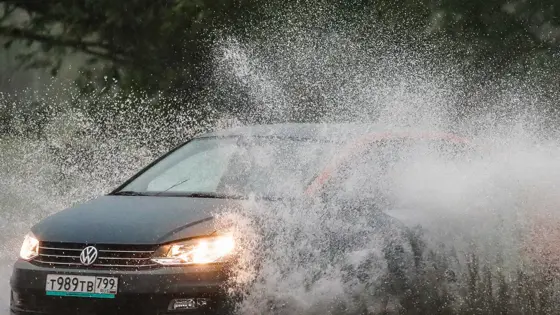 В ролике видно, что водитель отечественной легковушки вышел из автомобиля и толкал ее вручную. Отмечается, что из-за воды у мотора произошел гидроудар.