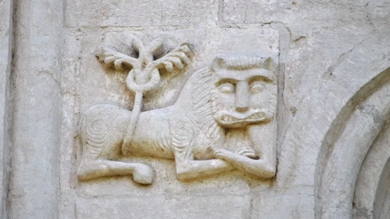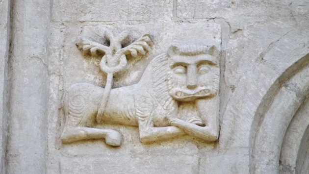 Главный герой - один из львов с барельефов Дмитриевского собора, построенного в 1191-м году, который наряду с Успенским собором и Золотыми воротами является главным архитектурным памятником древнего города. Лев изображен и на гербе Владимира, правда, там он стоит на задних лапах, над ним железная корона, а в передних лапах - серебряный крест.