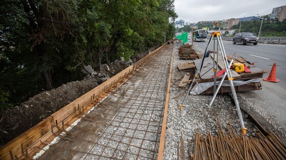Сейчас специалисты подрядной организации «Бетон-Сервис», работающей по муниципальному контракту, забетонировали более чем полкилометра пешеходной зоны. Подготовительные работы перед бетонированием продолжаются на других участках путепровода: там монтируют армокаркас и опалубку. Для безопасности проезжую часть отделят от пешеходов леерами. Завершить ремонтные работы от остановки «Молодёжная» по направлению в центр города запланировано к середине ноября.