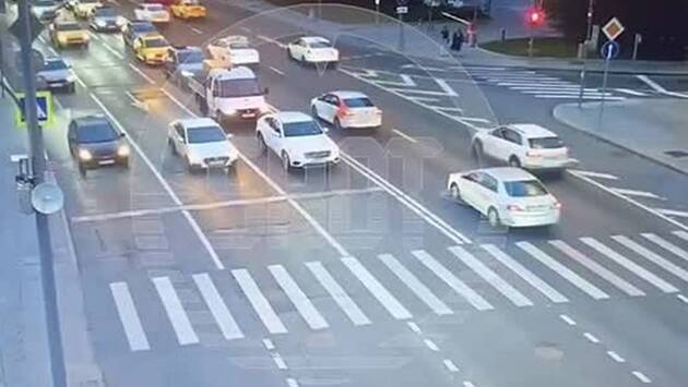 Инцидент произошел около Дома правительства в Москве. В ролике видно, как машина проезжает через пешеходный переход в то время, когда на светофоре для пешеходов горит зеленый свет, причем для перехода остается еще больше 20 секунд.