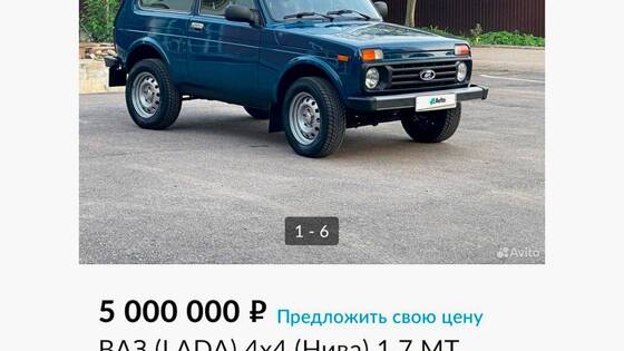 Речь идет о девятилетней машине синего цвета с пробегом в 50 тысяч километров, которая, по словам автора публикации, ездила по Москве с логотипом партии. Среди прочего в объявлении прикреплен снимок документов, якобы подтверждающий тот факт, что политик владел упомянутым транспортным средством. Стоимость «Нивы» оценили в пять миллионов рублей.