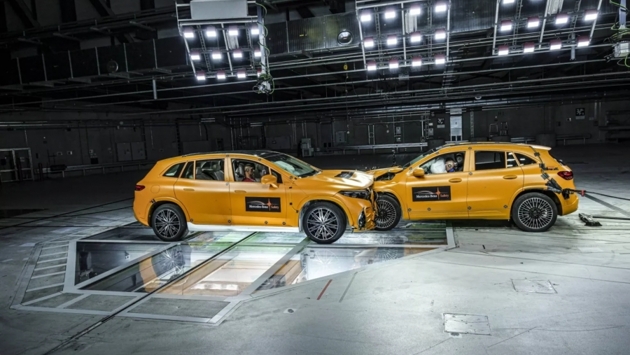 Когда Европейская программа оценки новых автомобилей (NCAP) проводит краш-тесты транспортных средств, она сталкивает их со статическим блоком на скорости 50 км/ч. Mercedes хотел доказать, что его новые электромобили чрезвычайно безопасны , поэтому он стал первым автопроизводителем, проведшим публичный краш-тест двух электромобилей.