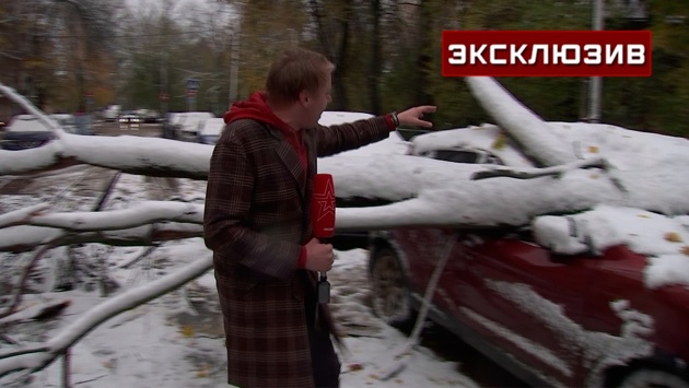 В результате порывистого ветра и снегопада в регионе десятки поваленных деревьев. На Ашхабадской улице дерево перегородило проезжую часть, упав на внедорожник. В результате крыша ТС продавлена, остекление у машины выбито.