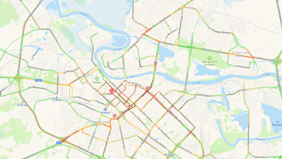 «Тюмень, 18:00. Пробки 10 баллов из 10», — указано на сайте сервиса.