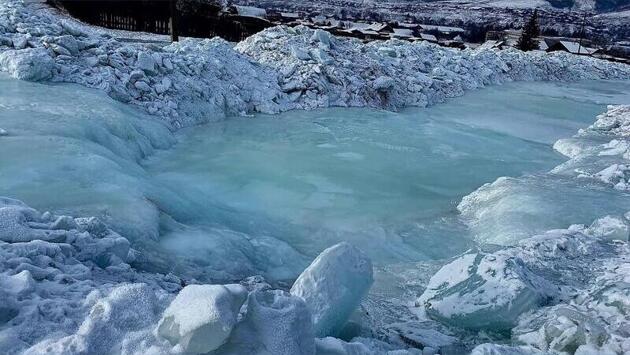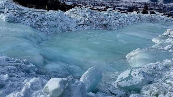 «Ситуация ежегодная. В русле вода, которая должна идти летом, продолжает и зимой. Понимаем, что у нас лёд, и в определенных местах всё перемерзает, где-то есть наплывы, появляются шишки на льду, но пока это всё происходит в русле реки», - рассказал глава.