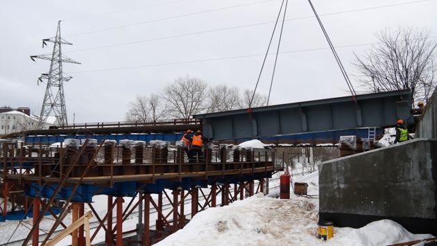 Реконструкция путепровода «Синие мосты» в Калуге вышла на новый этап. Строители приступили к монтажу пролетов. «Мостовое сооружение с расчётной нагрузкой около 14 тонн на ось будет состоять из 8 консольных плит и 32 главных балок. Первую из них — балку крайней опоры путепровода — уже установили с помощью многотонного подъёмного крана», — написал в своем телеграм-канале городской голова Дмитрий Денисов, приехавший на стройплощадку, чтобы проверить ход работ.