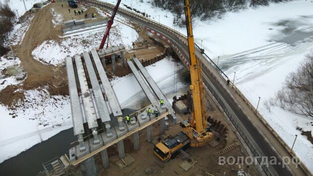 Монтаж балок среднего пролёта Кувшиновского моста завершается в Вологде