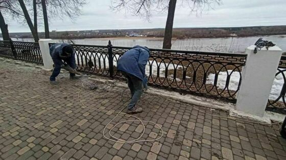 На набережной Грина отремонтируют ограждение. Всего будет обновлено более 33 пролетов. Ранее было выполнено обследование и выявлен участок, где произошел наибольший наклон ограждений в сторону реки. Сейчас здесь ведутся работы по демонтажу железобетонного фундамента. Перед началом работ по заливке нового фундамента чугунное ограждение будет снято, чтобы его не повредила спецтехника при работе, после работ вернут обратно.