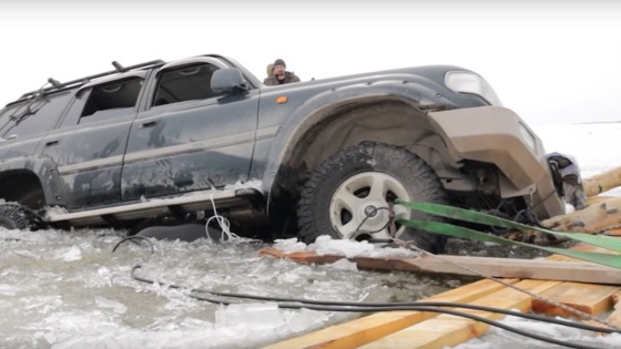 Сразу завелся: застрявший в ледяном плену под Новосибирском Land Cruiser спасли