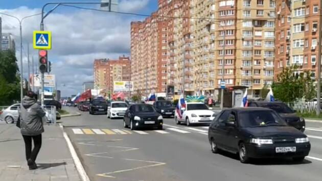Автолюбители украсили свои машины флагами. Среди них были российские триколоры, знамя Победы, флаги различных родов войск и даже имперский стяг.