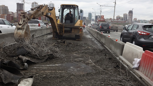 Как сообщил директор МКУ "Гормост" Иосиф Кодалаев, на Димитровском мосту уже проведена замена изношенных слоев асфальтобетонного покрытия общей площадью 7 900 квадратных метров, установлены дорожные знаки. Для движения транспорта открыто шесть полос - по три в каждом направлении. На одной из полос закрыто 400 метров, в пятницу здесь установят ограждения для продления полосы. Параллельно идут работы по демонтажу асфальта, защитного и выравнивающего слоев, гидроизоляции, вскрывается основание вплоть до плиты пролетного строения.