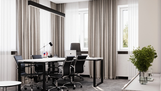 В аукционной документации представлены эскизы интерьеров обновленного здания Представительства Омской области. В альбоме показано, как будет выглядеть кабинеты губернатора и замгубернатора, конференц-зал, рабочие кабинеты, комната отдыха, холл, кухня и т.д.