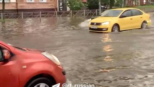 В Калининграде из-за проливных дождей несколько улиц ушли под воду. Об этом сообщает издание «Клопс».