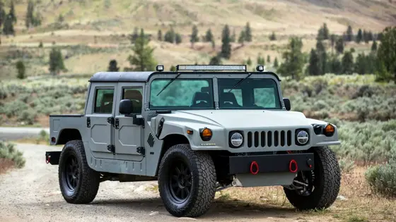 Американская компания North American Electric Vehicles представила электрический рестомод H1, название которого отчётливо указывает на исходный прототип — каноничный армейский внедорожник Hummer H1.