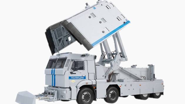 Машина предназначена для блокирования движения правонарушителей и защиты личного состава правоохранительных органов при пресечении массовых беспорядков. Комплекс состоит из базового шасси и оборудования мобильного защитного комплекса с ограждением, системами пожаротушения, видеонаблюдения, а также светового и звукового воздействия. «Стену» можно привести в рабочее состояние за пять минут.
