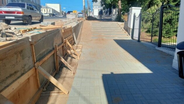 Совместно с обществом инвалидов готовили техническое задание и тщательно подходим к его исполнению. Подрядчик обновляет покрытие из брусчатки, на лестничных маршах в обязательном порядке обустраиваются пандусы. Работы здесь будут завершены до юбилейных мероприятий, - подчеркнул Вячеслав Николаевич.
