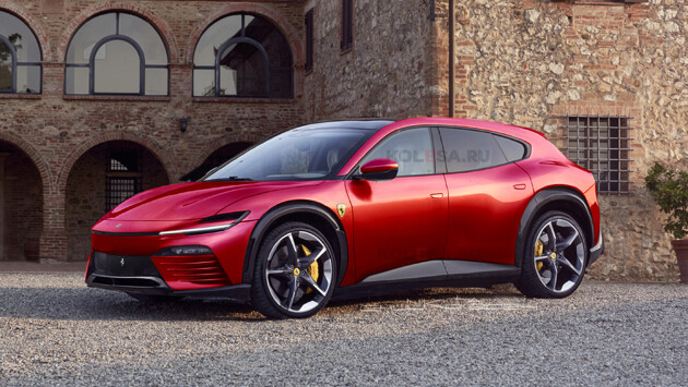 Мы взяли эти шпионские фотографии за основу и представили, как этот кузов может выглядеть в фирменном облике итальянского бренда. Ближе всего к подобному типу кузова из современной линейки Ferrari, конечно же, первый кроссовер марки с именем Purosangue. У него позаимствована основная стилистика, в том числе оформление передней части, при этом бампер сделан оригинальным. В похожем стиле сделаны колёсные арки, боковое остекление и дверные ручки, только здесь они есть на каждой двери, а сами двери сделаны традиционными, а не распашными. Задняя часть, помимо Purosangue, вдохновлена новым купе 12Cilindri.