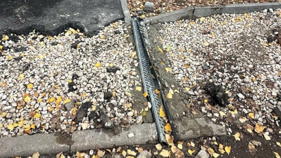 Проблемы есть и при организации ливневых стоков. Рабочие сначала кладут асфальт и бордюрной камень, уже потом вырезают сам сток. В итоге территория выглядит неэстетично.