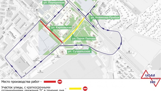На улице Героя Попова движение перекроют на участке от улицы Суздальской до пересечения с улицей Новикова-Прибоя, на Карповской будет ремонтироваться участок от улицы героя Попова до кафе в районе дома № 7А по улице Героя Попова, на Порядковой — участок от улицы Карповской до дома № 2А по улице Порядковой.