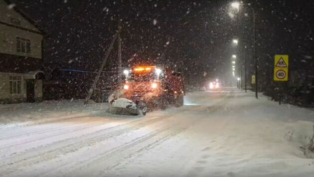 Снегопад шёл всю ночь, поэтому техника оперативно отрабатывает его последствия. Специалисты также обработали противогололедными материалами почти 2500 км дорог.